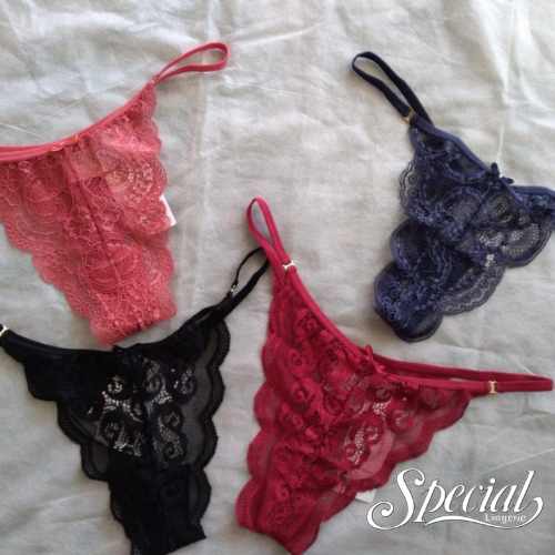 Sutia Alça Fina de Renda e Calcinha Fio Dental String de Renda | Tamanhos: P, M, G e GG | Cores: Branco, Preto, Cristal, Cacau e Tango