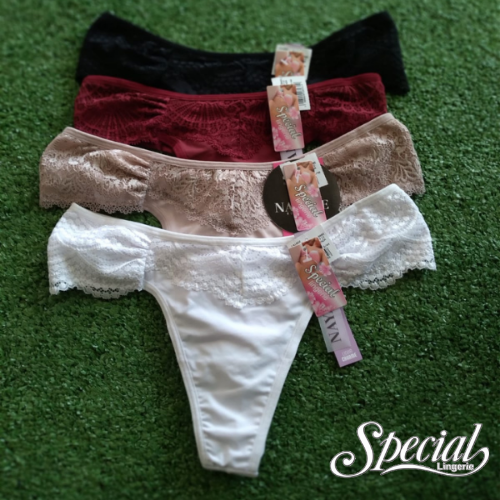 Calcinha Fio Dental String Renda Larga | Tamanhos: P, M e G | Cores: Preto, Branco, Marinho, Cristal e Cacau