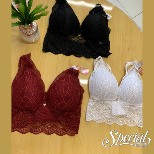Sutia Top bojo sem aro em renda | Tamanhos: M, G, GG e EG | Cores: Branco, Preto e Cristal